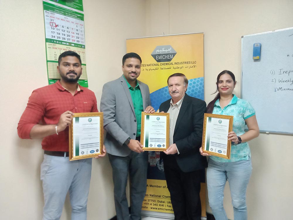 Certificate delivery ceremony held at Emirates National Chemical Industries L.L.C.(Member of Arabian Holdings Limited) by URS-ME. We congratulate the whole team for their efforts and dedication towards achieving the certifications. We are honored to be part of the team’s success.